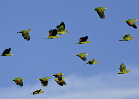 Amazona are generally seen flying in pairs within small to large flocks. Most flocks are mixed species flocks.