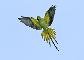 Rose-ringed Parakeet in flight (click to enlarge) |