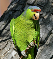 The Lilac-crowned Parrot is resident to western Mexico from southeastern Sonora to southern Oaxaca; criteria for separation in the field from the Red-crowned Parrot are given by Howell and Webb (1995) and Garrett (1995). Briefly, the Lilac-crowned has the red of the head restricted to a band of dull maroon across the forehead and has an extensive wash of lilac through the crown; the Red-crowned shows a bright red forehead and forecrowns (extending in males to the center of the crown) and variable blue which is usually restricted to the sides of the crown. The cere of the Lilac-crowned is dusky or dark gray but pinkish-flesh in the Red-crowned. At rest and in flight the Lilac-crowned is noticeably longer-tailed. Finally, although many vocalizations of these two species are similar (and even appropriated from one another?), the distinctive squeaky upslurred whistle of the Lilac-crowned differs from the typical downslurred whistle of the Red-crowned. Hardy (1973) did not mention this species for Southern California, but Froke (1981) recorded a minimum of 22 individuals in the San Gabriel Valley from 1976 to 1978, with nesting evidence. (Garrett 1997)